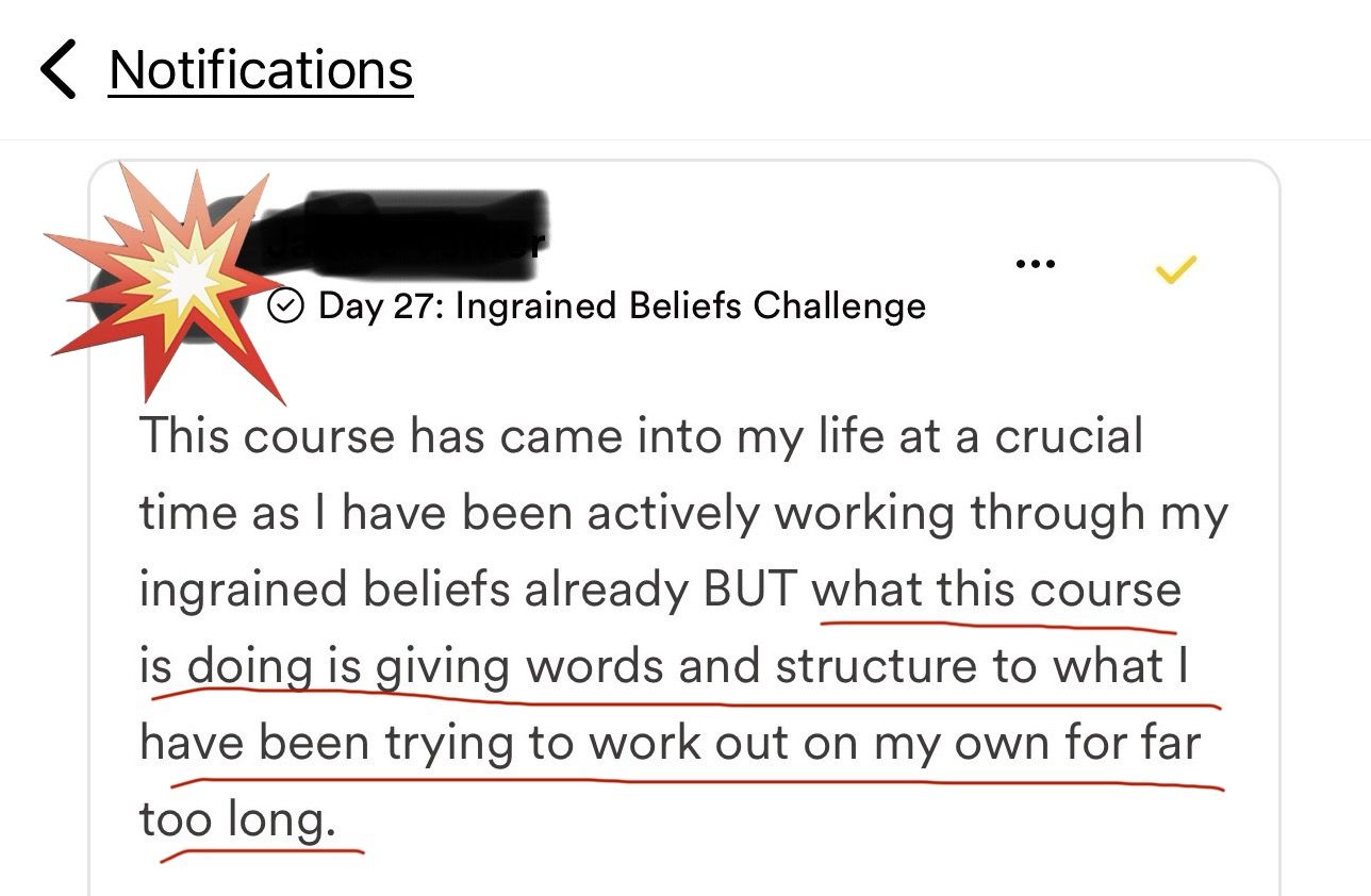 It's a well-known fact that accountability boosts success. And changing your habits isn't an easy task... it's simple enough, but it's not easy. That's why we've built in connection as a core element of your daily 15 mins. You're set up for success in your endeavour to rewire patterns (inside and out) that aren't serving you... by incorporating daily, intentional connection.